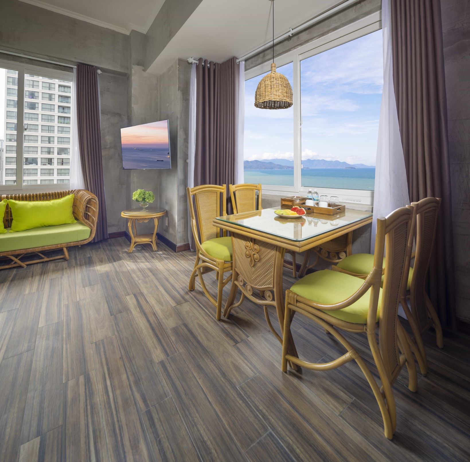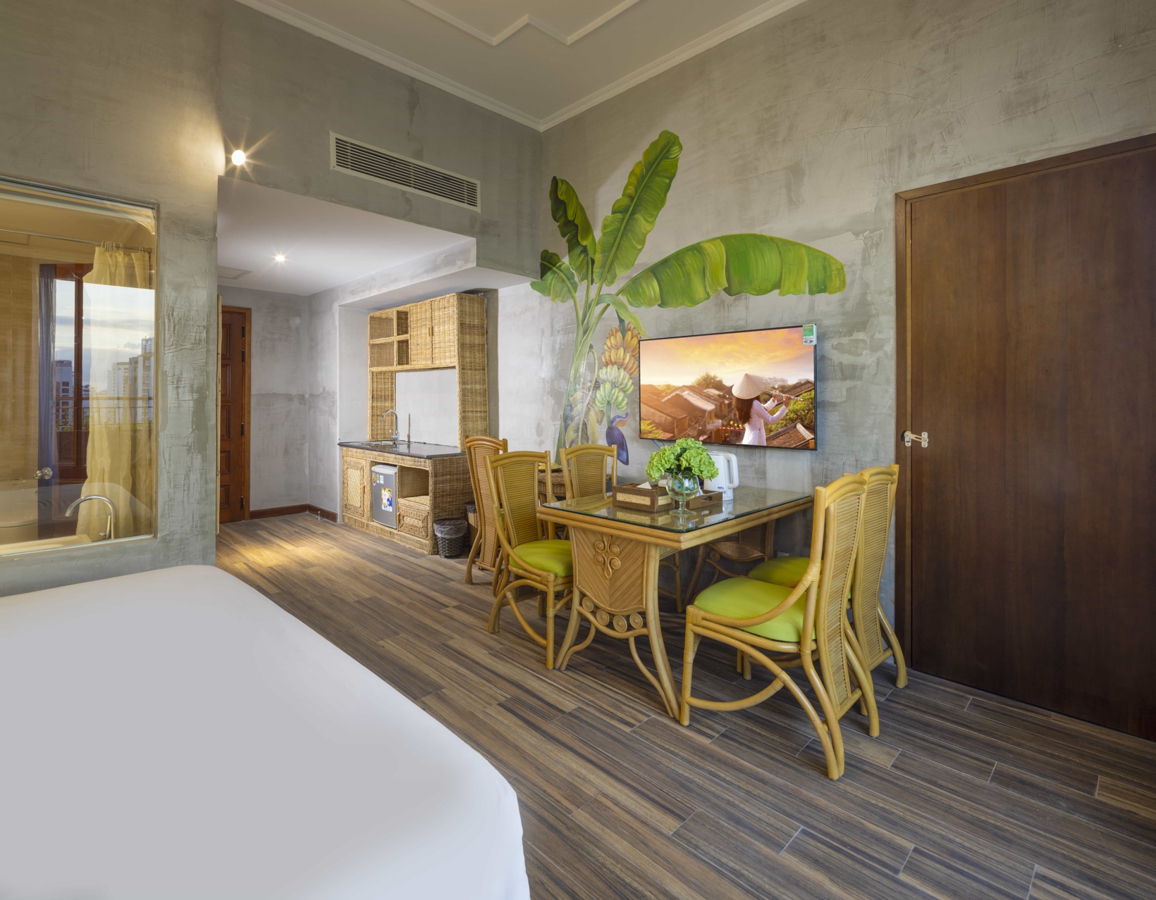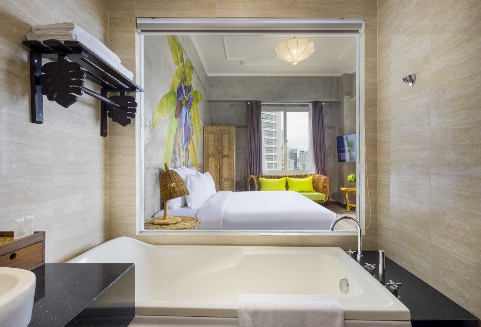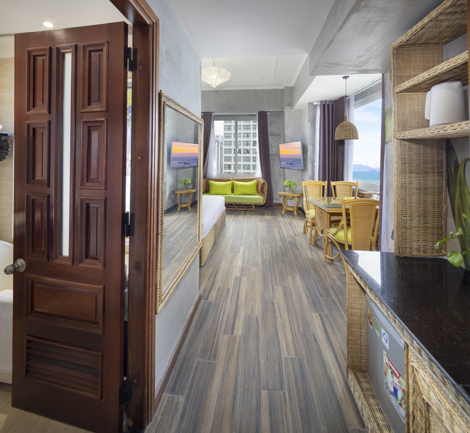 Sở hữu không gian 30 mét vuông với tầm nhìn phóng thẳng ra toàn bộ bờ biển Nha Trang. Căn phòng được trang bị hệ thống nội thất làm từ cây tre thuần tự nhiên, giường đôi làm từ những cành mây êm ái, vườn treo và hoa giấy râm mát… Hành trình nghỉ dưỡng với những kỷ niệm khó quên dành cho cặp đôi và gia đình bắt đầu từ chính căn phòng này.